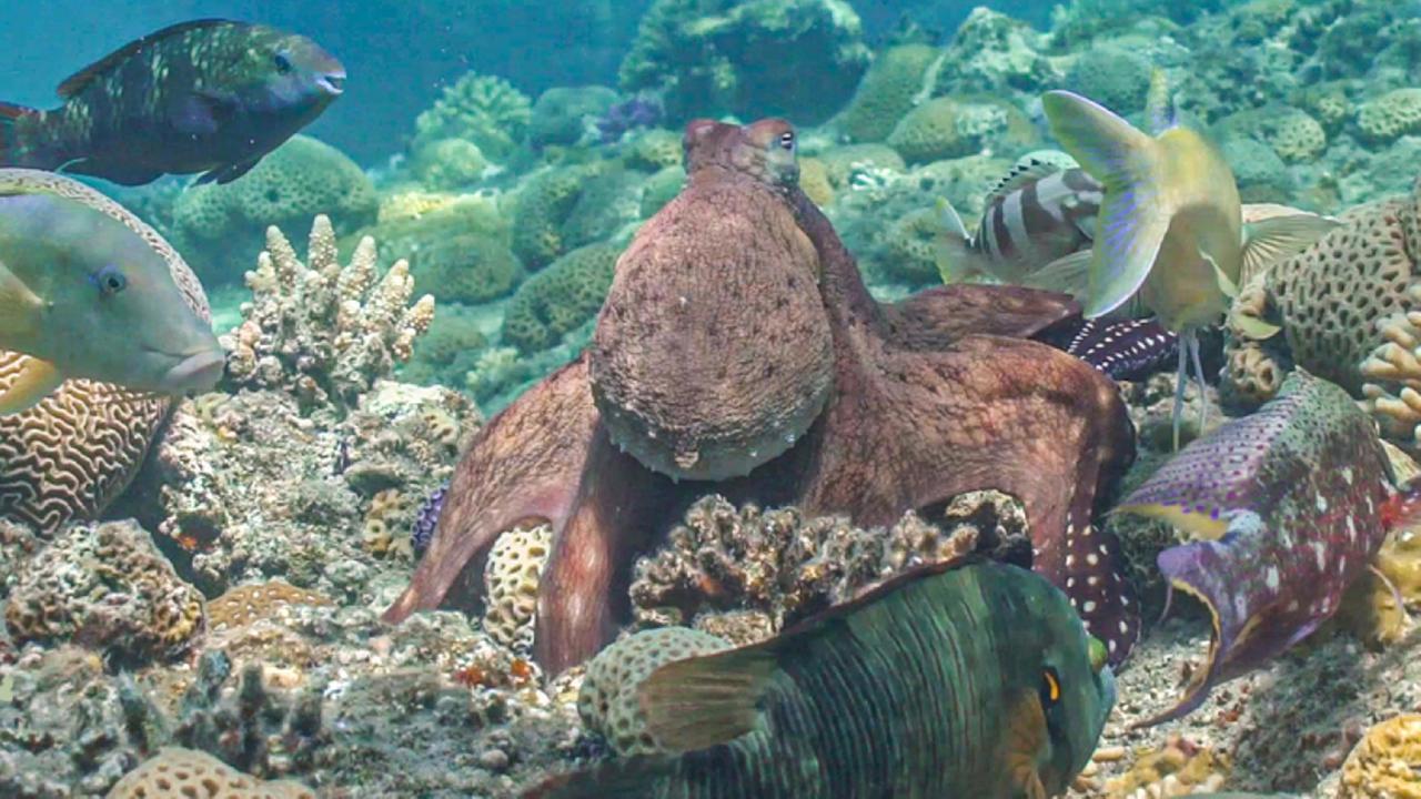 Beobachtungen im Roten Meer: Der Oktopus nimmt eine eher unübliche Führungsrolle ein.