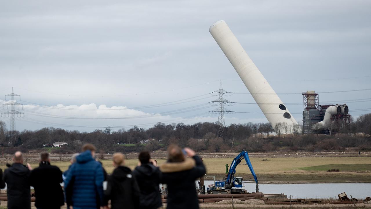 Stillgelegt wurde das Kohlekraftwerk in Voerde am Niederrhein schon vor acht Jahren. Nun hat der Energiekonzern RWE einen Turm sprengen lassen. An dem Standort soll ein moderneres Kraftwerk entstehen – ab 2030.