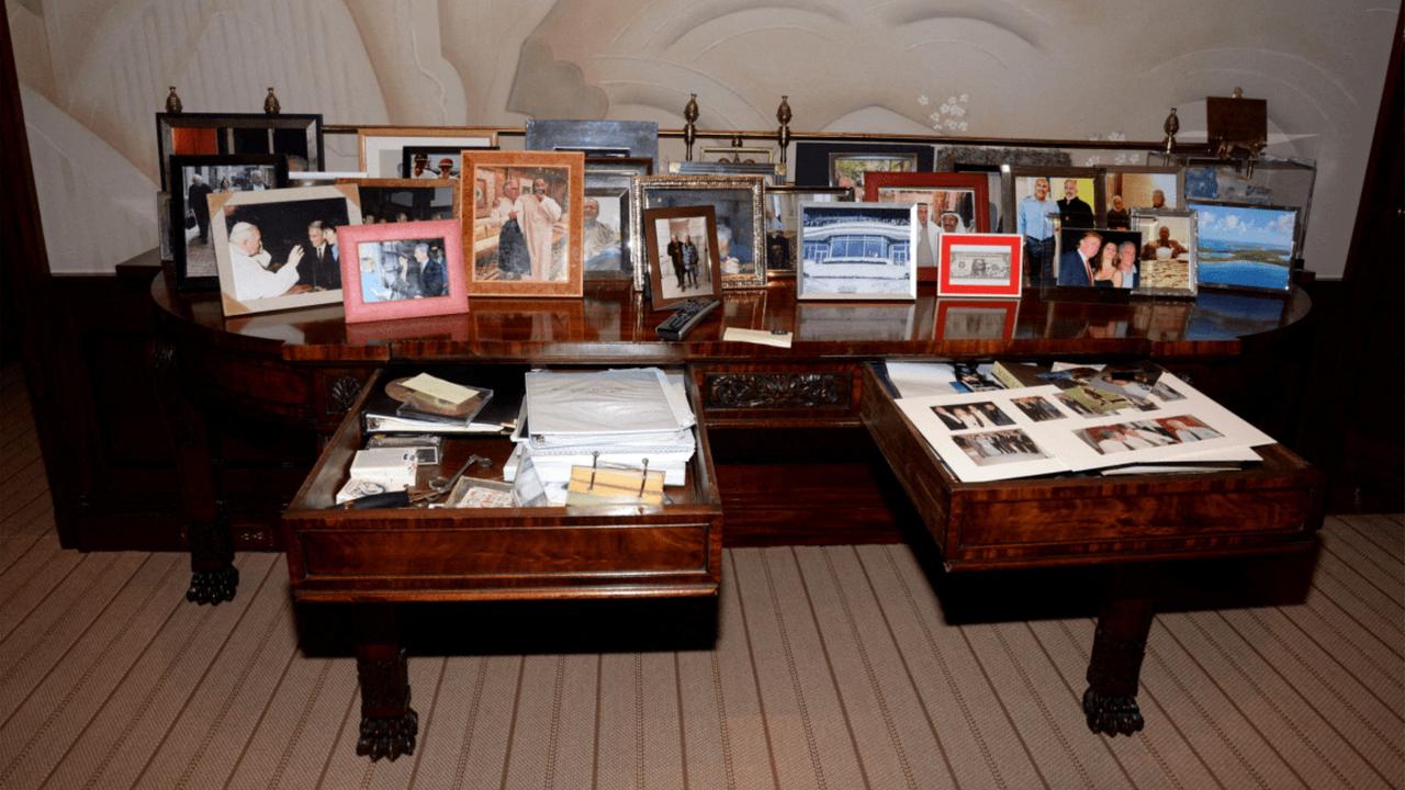 Auf der besagten Aufnahme sind zum Teil eingerahmte Fotos zu sehen. Eines der Fotos ist schon älter und zeigt den heutigen Präsidenten Donald Trump mit seiner Frau Melania in Begleitung des gestorbenen Sexualstraftäters Jeffrey Epstein und dessen langjähriger Vertrauten Ghislaine Maxwell. „Wenn sie dieses Bild runternehmen, stellt Euch vor, was sie noch alles verbergen wollen“, erklärte der Chef der Demokraten im Senat, Chuck Schumer. Ex-US-Präsident Bill Clinton ist auf einem anderen Bild zu sehen.