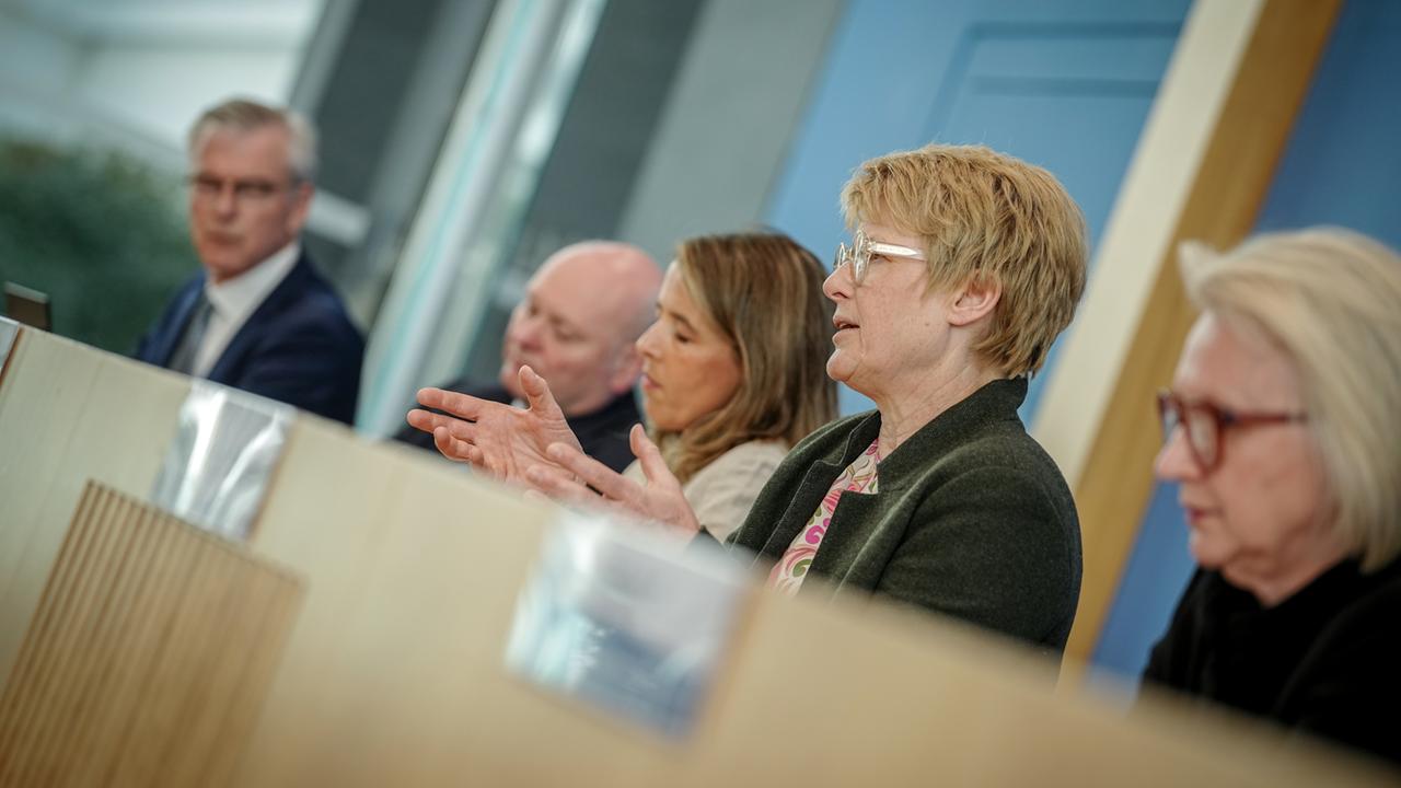Martin Werding, Achim Truger, Ulrike Malmendier, Veronika Grimm und Monika Schnitzer bei der Vorstellung des Frühjahrsgutachten des Sachverständigenrates Wirtschaft.