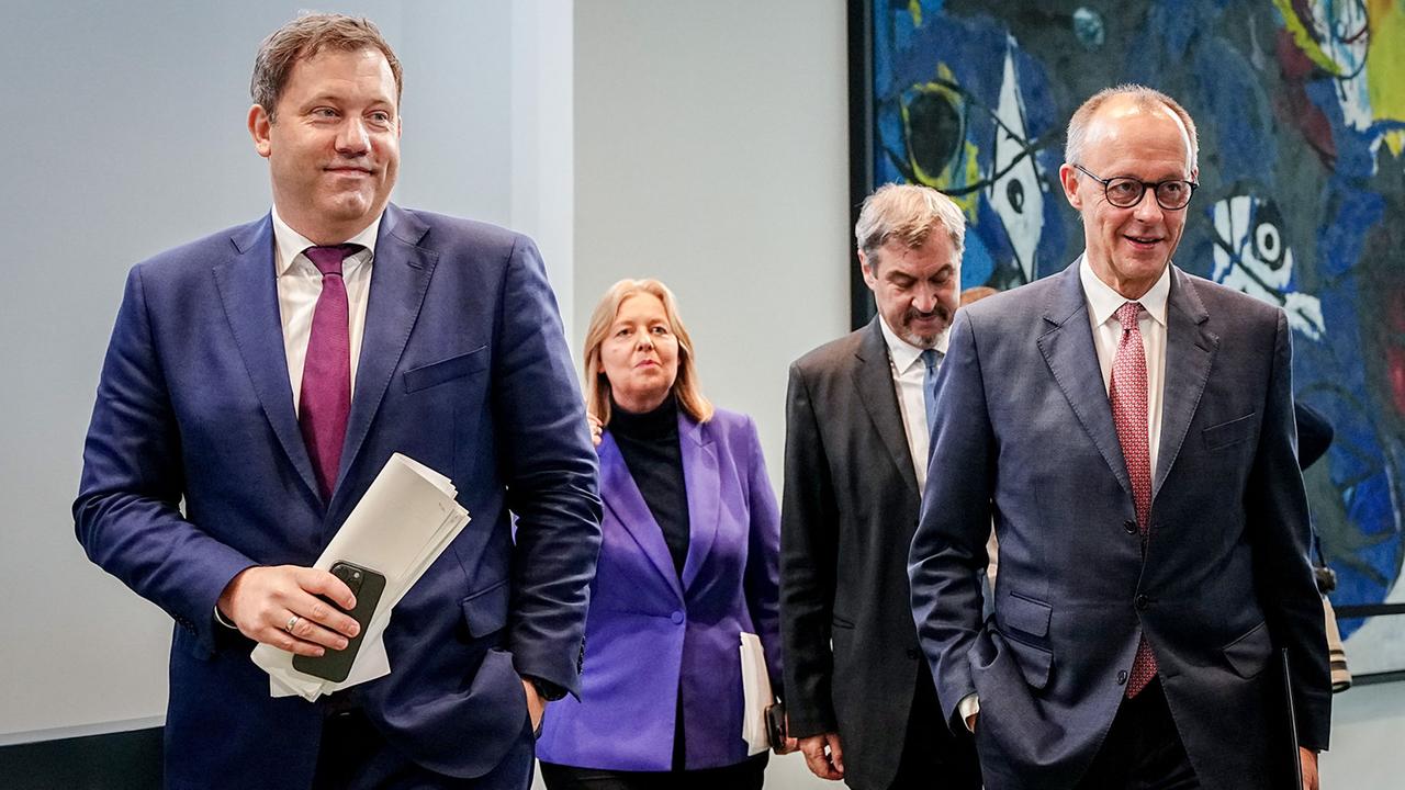 Es ist 2:20 Uhr in der Nacht, als die letzten Verhandler das Kanzleramt verlassen. Achteinhalb Stunden haben die Koalitionäre zusammengesessen. Am Morgen danach sitzen vier müde Parteivorsitzende bei einer Pressekonferenz im Kanzleramt.