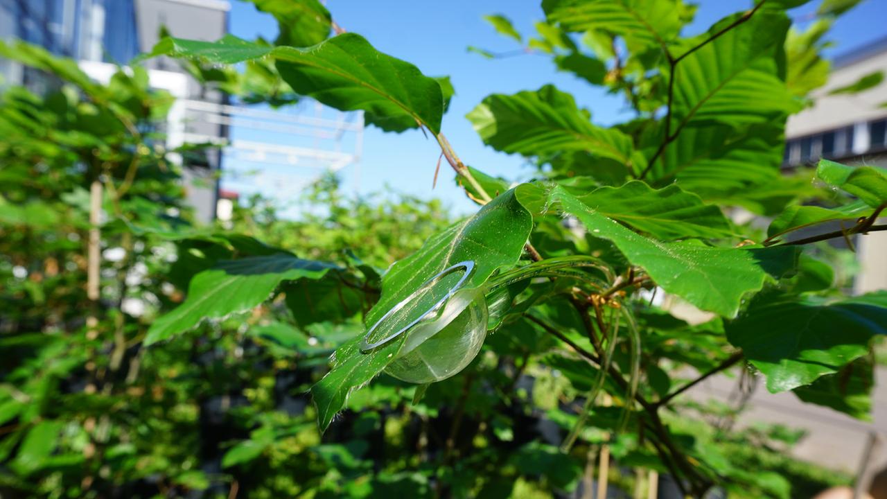 Die Forschenden haben eine sogenannte Blatt-Küvette entwickelt, um den Gasaustausch der Blätter zu messen. Sie ist eine kleine Messeinheit und schützt die Mikrosensoren vor Hitze, Frost und Sturm. Die Blatt-Küvette ist eine Halbkugel aus klarer Plastikfolie – hergestellt im 3D-Drucker. Diese Halbkugel wird mit einem magnetischen Metallring am Blatt befestigt. So die Lösung für Laubbäume. Für Nadelbäume müssen sich die Forschenden noch etwas überlegen.