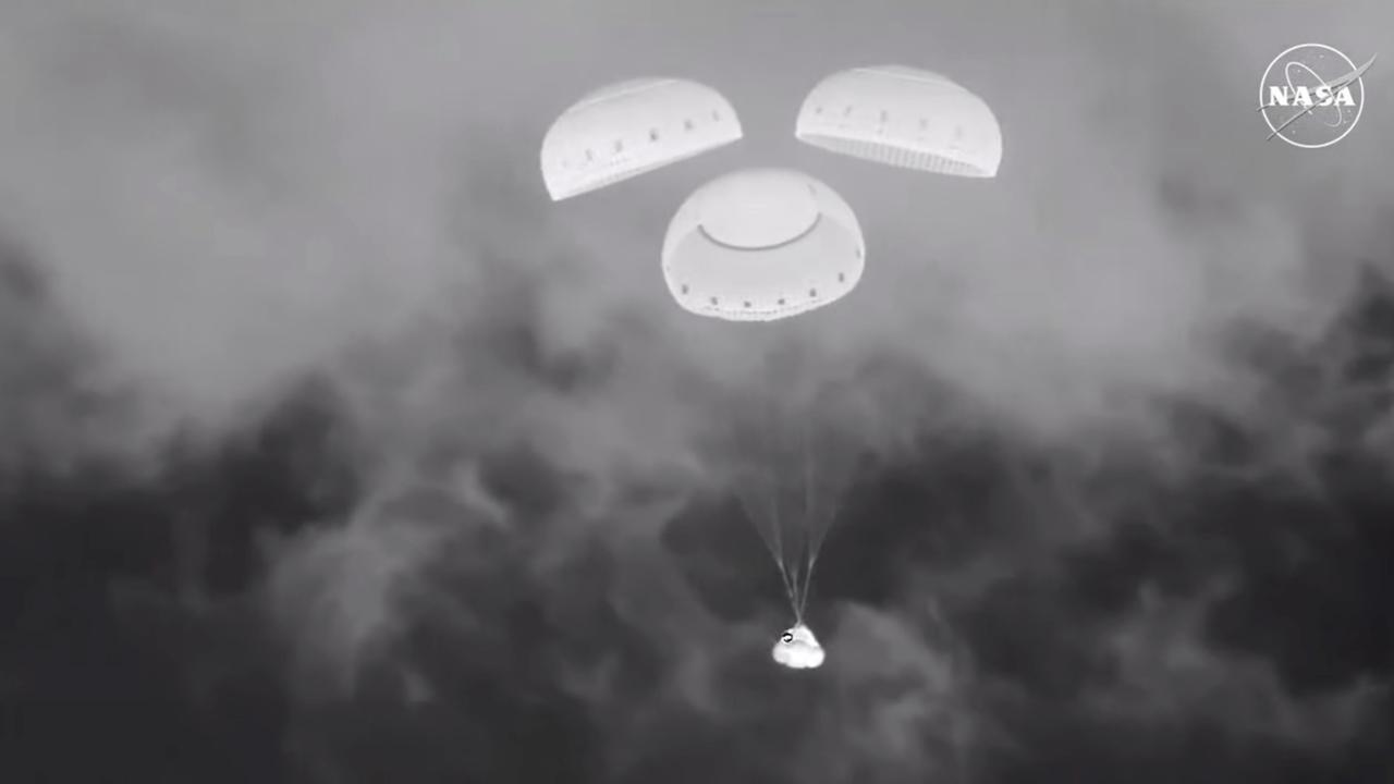 Nach rund sechs Stunden setzte der „Starliner“ in der Wüste des US-Bundesstaats New Mexico auf. Kurz vor der Landung des „Starliners“ öffneten sich wie geplant erst zwei Bremsschirme und dann drei Fallschirme, die ein sanftes Aufsetzen der Kapsel in der Wüste überhaupt erst ermöglichten. Schließlich entfalteten sich sechs Lande-Airbags.
