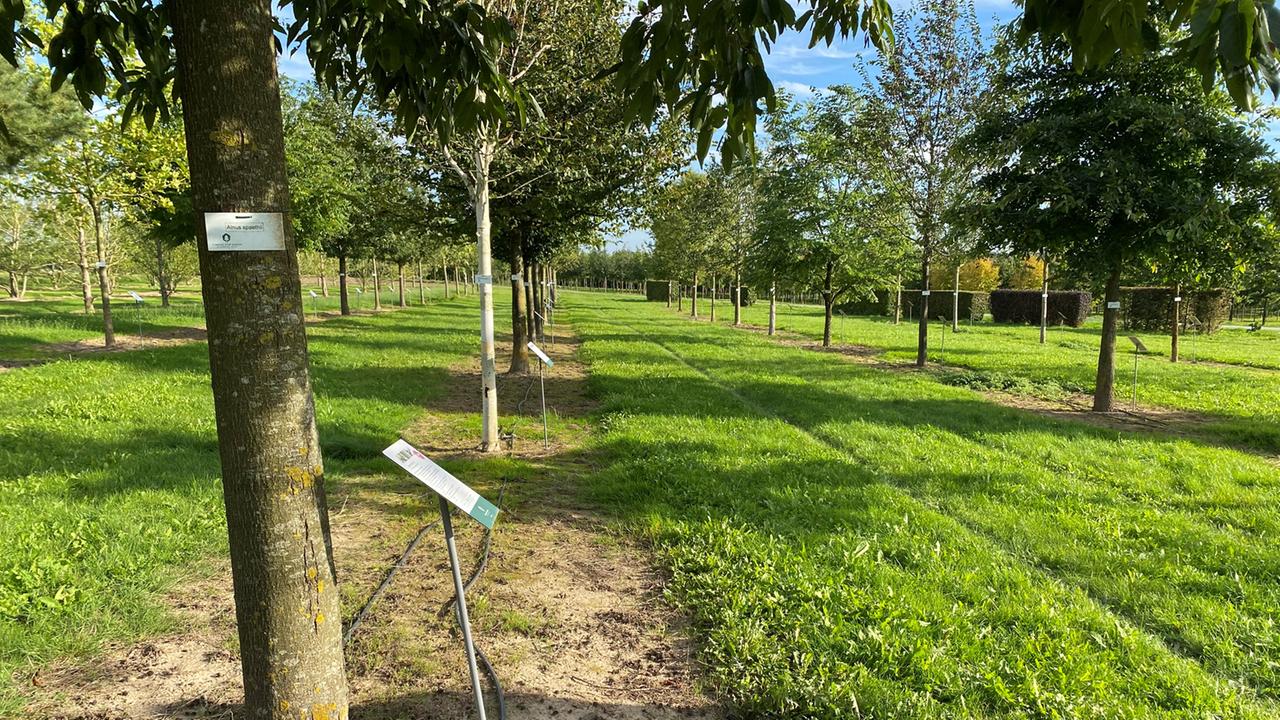 In Reih und Glied stehen die sogenannten „Klimabäume“ in der Hamburger Baumschule „Lorenz von Ehren“ beieinander. 70 verschiedene Arten, jeweils mit einem Schild bezeichnet. Die grüne Fläche nennt sich „Klimabaumhain“ und ist als Ausstellungsbereich für Kunden und Kundinnen gedacht – ein Überblick über Baumarten, die besonders gut gewappnet sein sollen für die Herausforderungen des Klimawandels in den Städten.