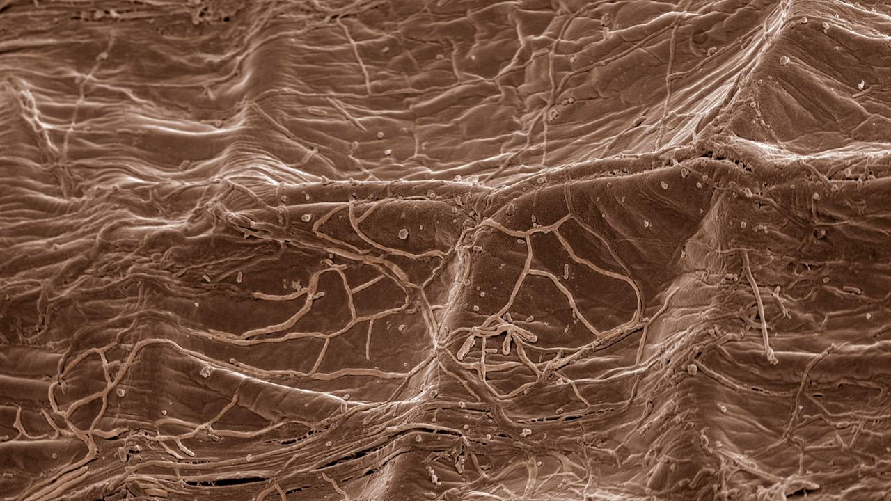 Rasterelektronenmikroskopische Aufnahme von einem Mykorrhizapilz in einer Pflanzenwurzel